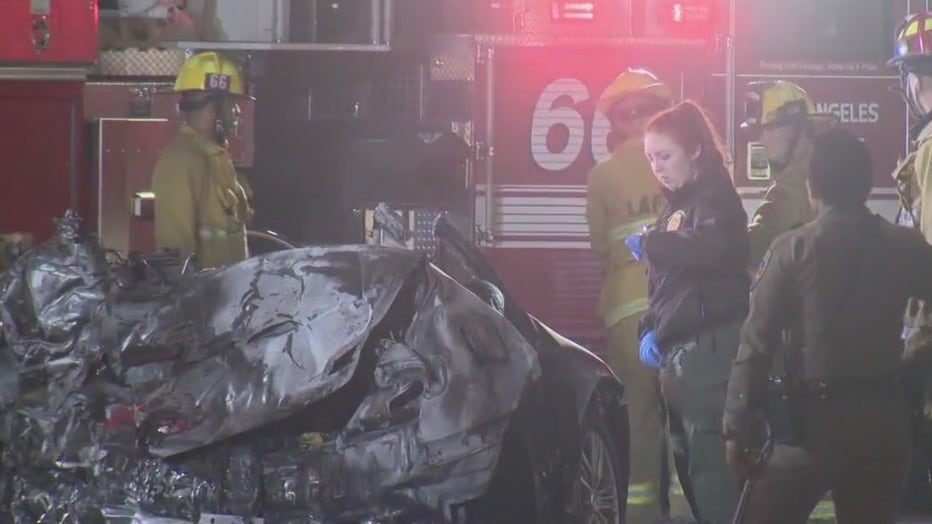 LOS ANGELES - Authorities said four people were killed in a horrific single-vehicle crash on the 110 Freeway in South Los Angeles late Thursday night.