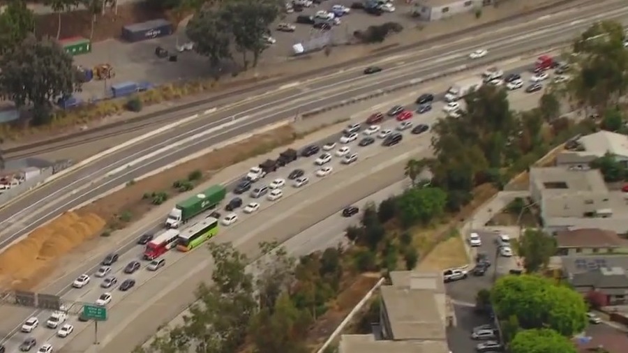 FOX 11's Stu Mundel reported from SkyFOX that the westbound side was down to one lane for the investigation and that traffic was backed up to Soto Street.