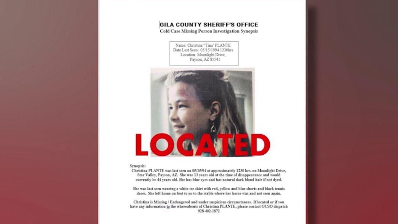 Investigators said Plante was 13 when she disappeared from the community of Star Valley. The community is located near the Payson area.