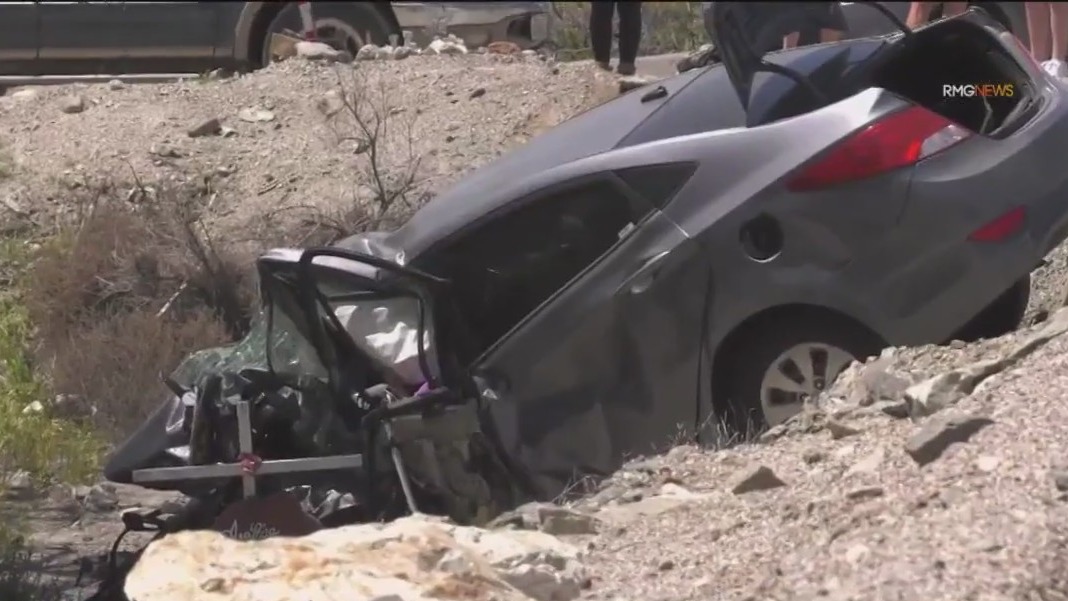It happened on Keenbrook Road, near Cajon Boulevard. Video from the scene showed several heavily damaged vehicles knocked to the side of the road in the crash.