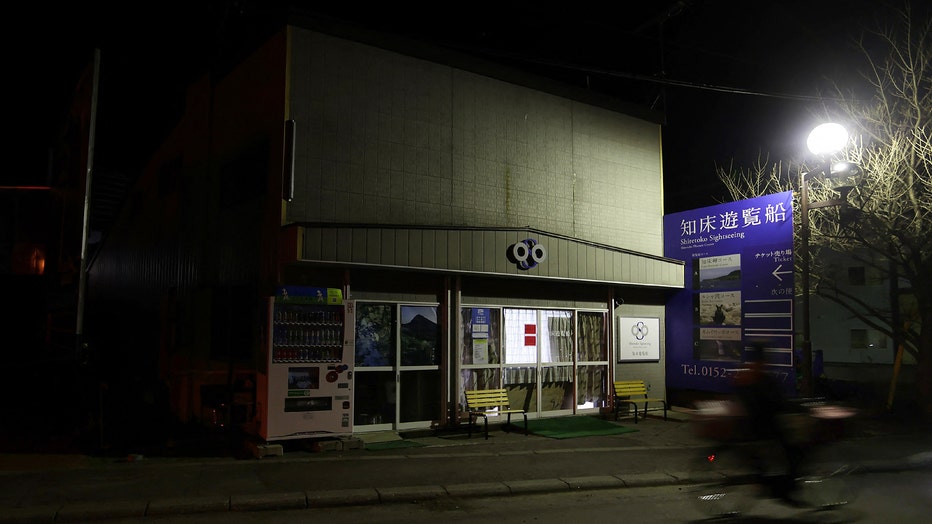 A general view shows the building of Shiretoko Sightseeing, a tour company building which a tour boat with 26 people onboard is missing, in Shari, Hokkaido on April 23, 2022. (Photo by Jiji Press / AFP via Getty Images)