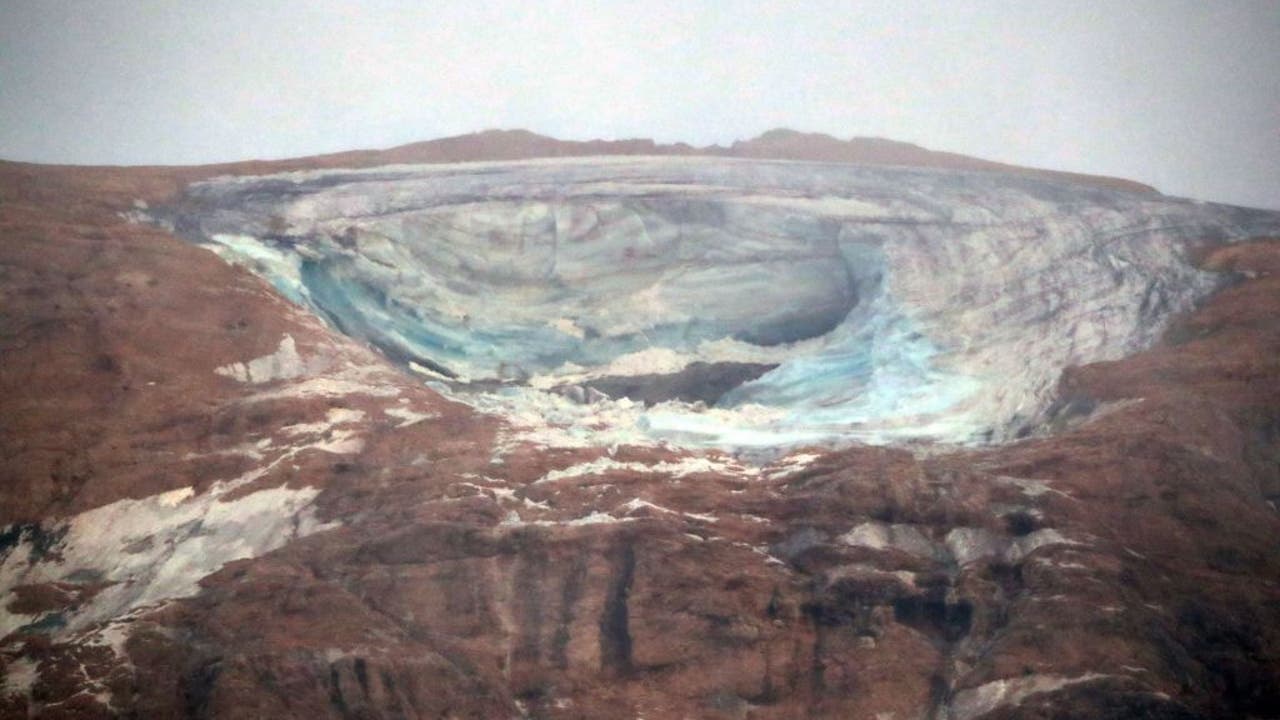 The glacier, in the Marmolada range, is the largest in the Dolomite mountains in northeastern Italy and people ski there in the winter. But the glacier has been rapidly melting away in recent years.