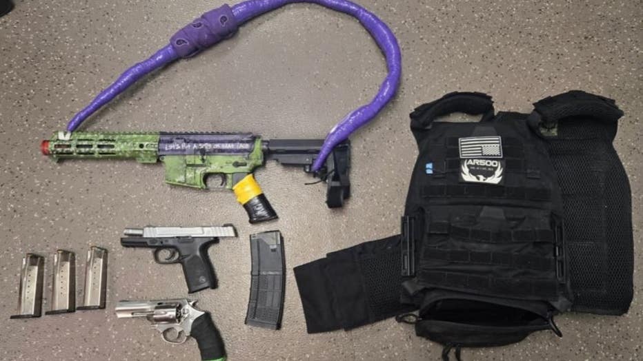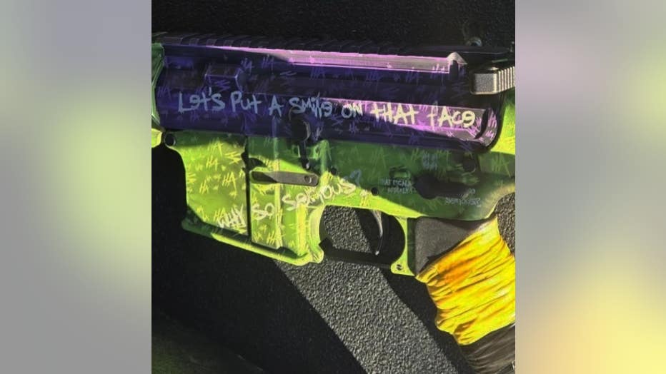 At the time of his arrest, Steiner was found with a semi-automatic short-barreled rifle and a loaded revolver. Investigators noted that the rifle was loaded with a round in the chamber and a full magazine inserted. The weapon was painted green and purple and featured phrases such as "Why so serious?" and "Let’s put a smile on that face."
