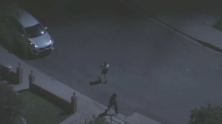 LOS ANGELES COUNTY, Calif. - Authorities are searching for a man and a woman involved in a police chase in the Pomona area.