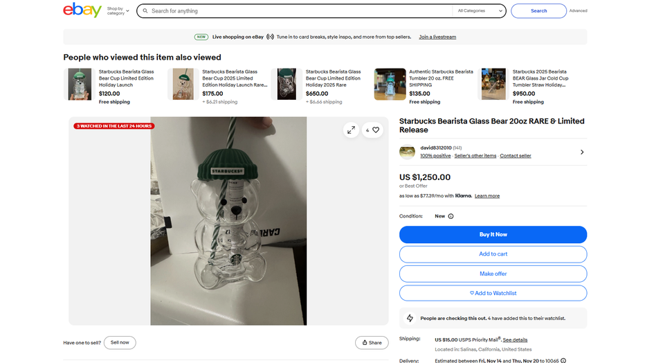 A quick search of Starbucks Bear Cup eBay listings shows dozens of resales, with some cups going for more than 10 times the original Starbucks Bear Cup price of just under $44.