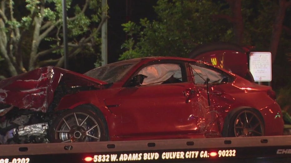 Santa Monica Boulevard was shut down for two blocks — from Harvard Street to 26th Street — as crews worked the scene. The damaged vehicle was towed away early Friday morning.