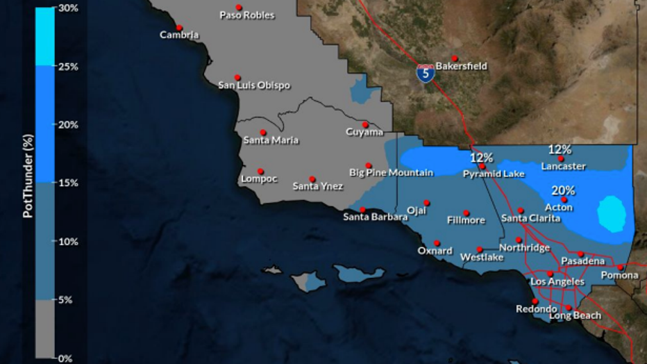 The thunderstorm threat will continue on Sunday over the eastern San Gabriel Mountains.