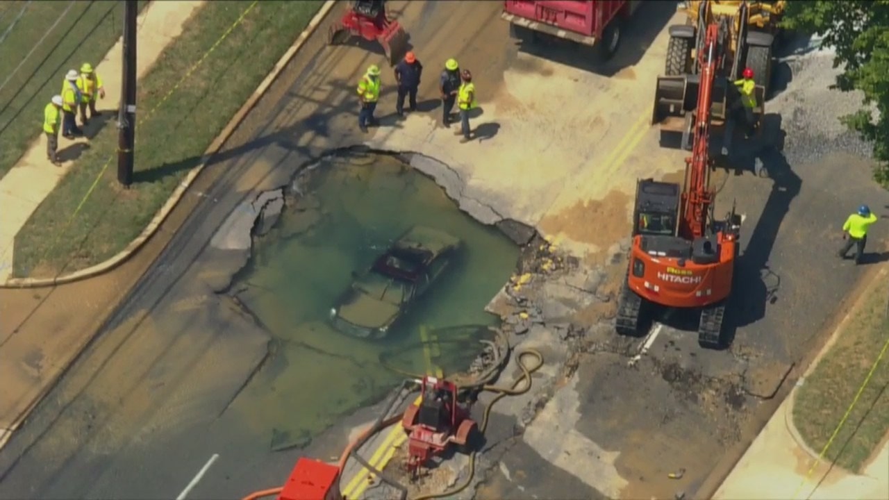 According to the WSSC, crews were responding to a 30-inch water-main break around 4:30 a.m. when the roadway collapsed into the sinkhole.