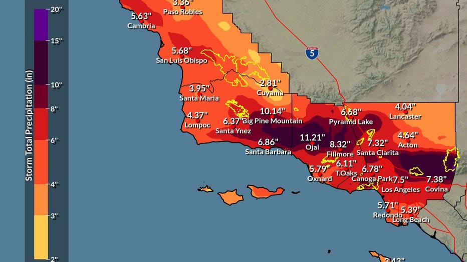 According to the FOX Forecast Center, rain rates could approach an inch per hour, threatening areas near burn scars from January's wildfire disaster with mudslides.