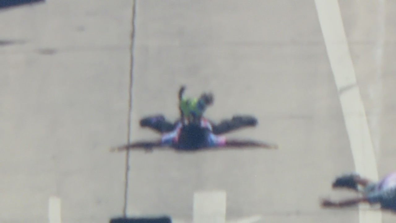 However, once the female passenger exited the vehicle, a small dog followed her. As the suspect laid on the floor, the dog jumped on her back and stood there for a few minutes until police approached them.