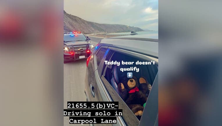 A California Highway Patrol officer in Ventura pulled someone over for speeding in the carpool lane and was shocked to find a teddy bear in the passenger seat.