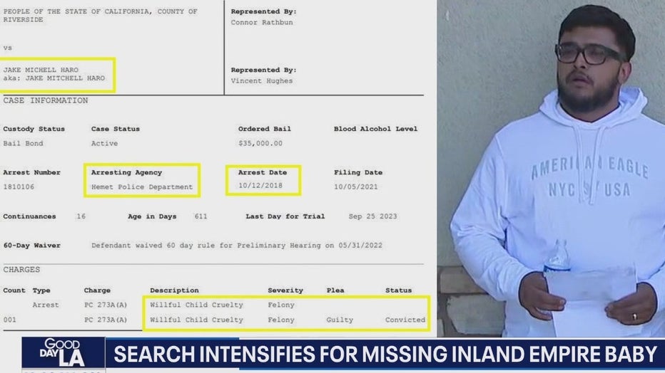 Court records show that Jake Haro pleaded guilty to child cruelty charges in Riverside County in a separate case in 2018. He’s currently on probation after he was convicted of those charges and jailed in 2023.