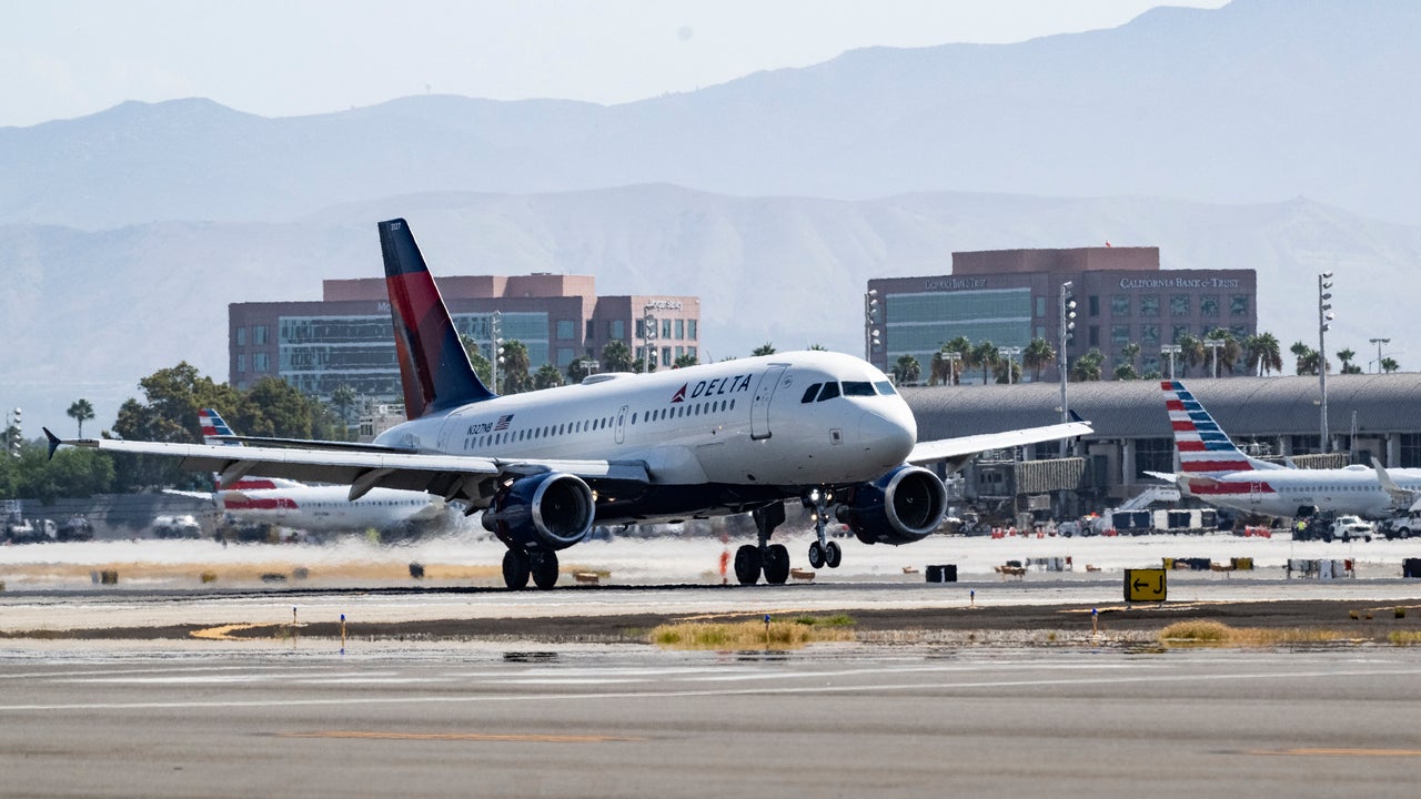 August 08: A Delta flight arrives at John Wayne Airport in Santa Ana, CA on Monday, August 8, 2022. (Photo by Paul Bersebach/MediaNews Group/Orange County Register via Getty Images)