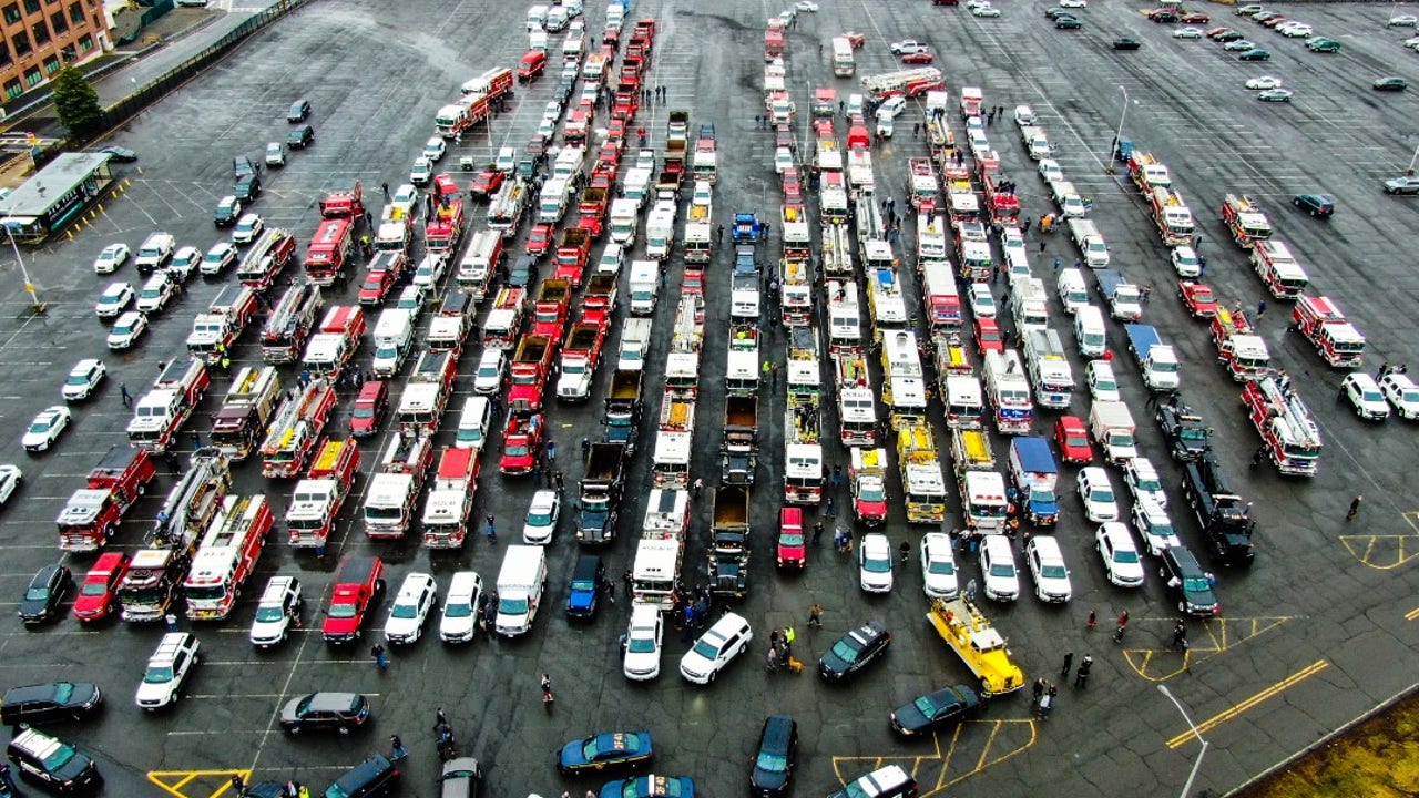 A video showed multiple fire departments from neighboring counties and states taking part in the parade that lasted close to 40 minutes, according to Boney.