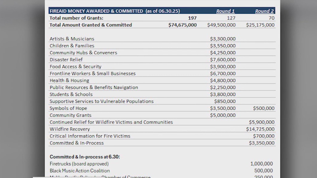 They said $25 million went towards supporting initiatives around financial and housing stability, mental health and trauma services, and community infrastructure. Additional funding went towards environmental remediation, soil testing, permitting support, sustainable rebuilding efforts, and educational support for students. Aid was also given to small businesses and displaced workers.
