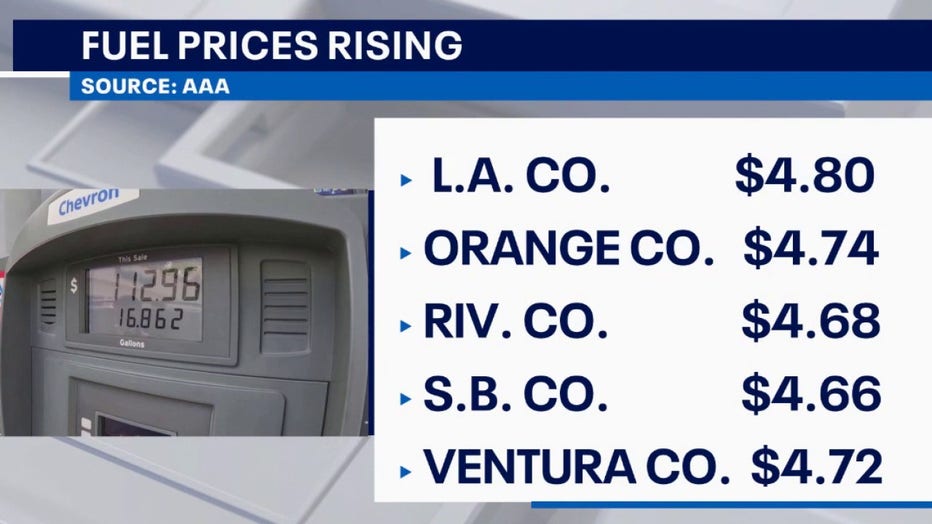 The price of a gallon of gas is quickly climbing past the $5 mark in Southern California.