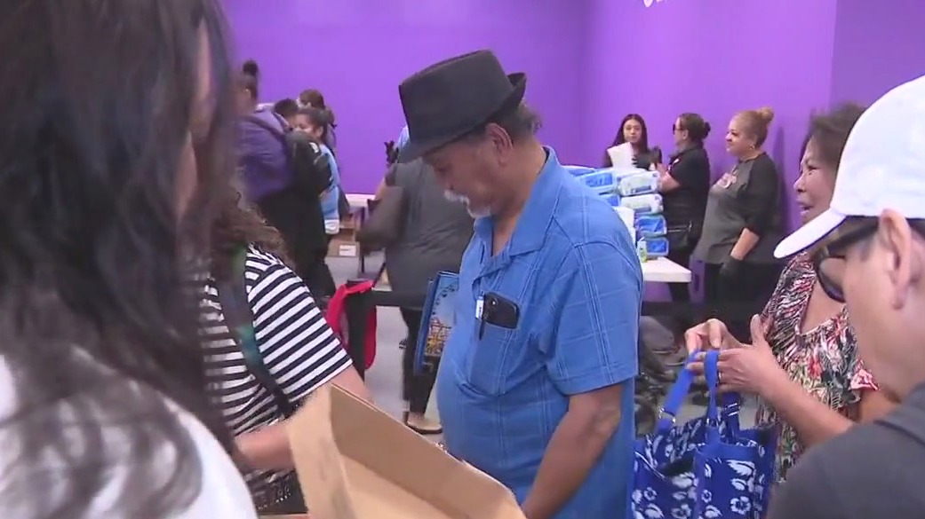 Hundreds of residents, including those who receive SNAP assistance, packed TrueLA Church's parking lot Thursday in southwest Los Angeles.
