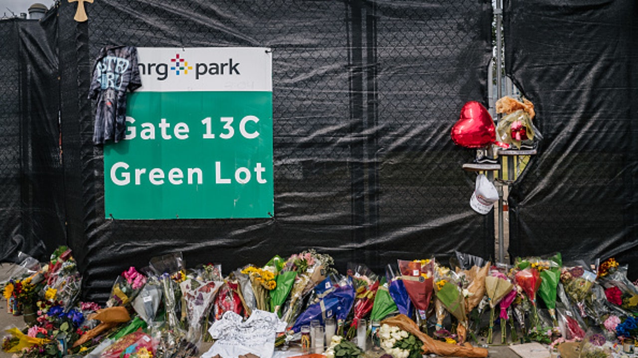 HOUSTON, TEXAS - NOVEMBER 09: A memorial to those who died at the Astroworld festival is displayed outside of NRG Park on November 09, 2021 in Houston, Texas. Eight people were killed and dozens injured last Friday in a crowd surge during a Travis Sc