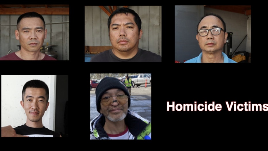 From top left to bottom right are: Yi Luo, Guangqi Fu, Xin Chen, Quizhuo Liang and Bordin Sikarin (Photo credit: LA County DA's Office)