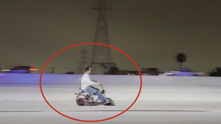 LOS ANGELES COUNTY, Calif. - Los Angeles drivers couldn't help but do a double-take when they saw police pursuing a man on a minibike in the Harbor Gateway area.