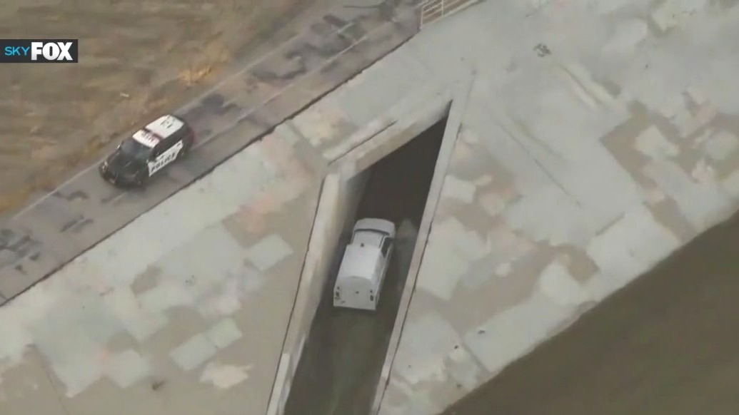 A van vanished after pulling into a storm drain just off the Los Angeles River.
