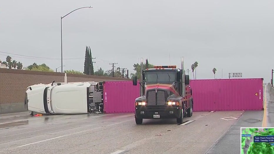 Three semi-trucks collided together on the 5 Freeway near the Sunland exit in Sun Valley. The crash happened as heavy rain hits SoCal.