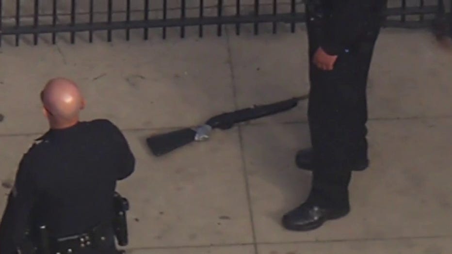 SkyFOX footage showed a long gun seemingly duct taped at the stock. LAPD confirmed that the suspect was shot by police and died at the scene.