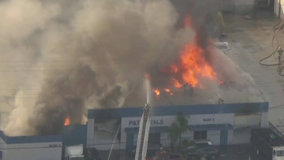 Sparks were seen flying as crews responded to a warehouse that exploded near South El Monte.