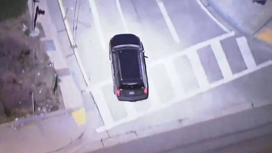SkyFOX was over the scene as the suspect – inside a dark-colored SUV – led the California Highway Patrol on a chase on Thursday, April 23.