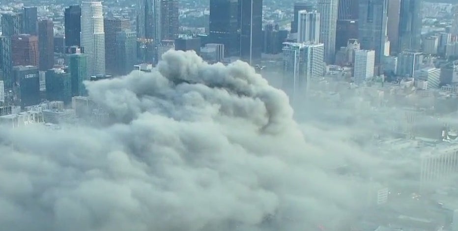 Plume of smoke seen for miles after massive fire erupts in downtown Los Angeles