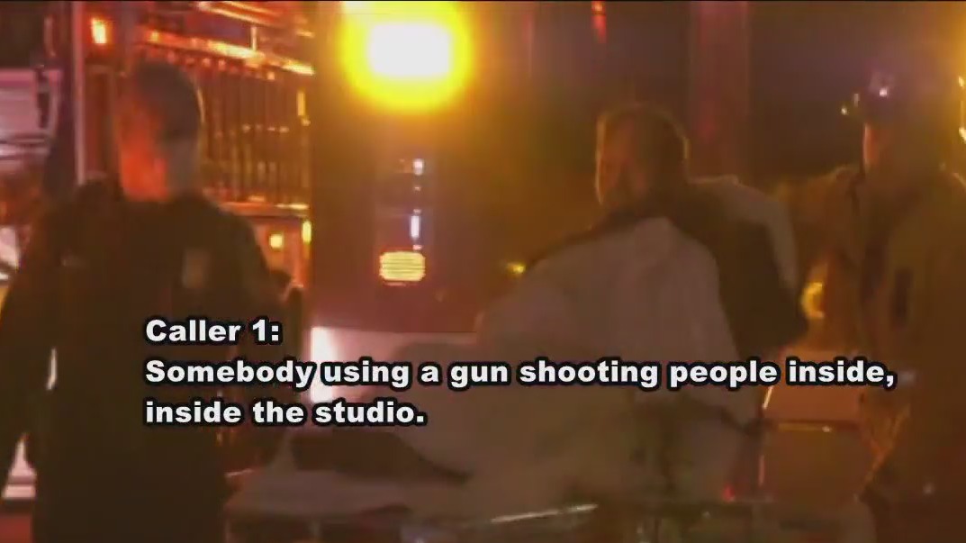 In the audio files callers can be heard saying "somebody using a gun shooting people inside the studio" and "we tried to leave. We start the car and try to leave and suddenly somebody come next to the window and shoot the window."