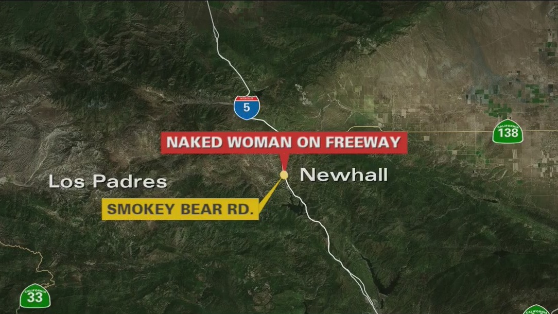 LOS ANGELES COUNTY, Calif. - A naked woman carrying a stuffed animal on the Golden State (5) Freeway in the Gorman area was allegedly involved in or caused a multi-vehicle crash Saturday and was detained on a mental health hold.