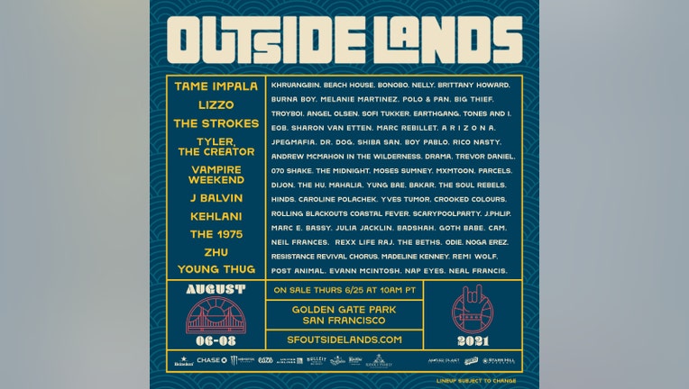 More information about the festival, tickets and the full lineup can be found at https://www.sfoutsidelands.com.