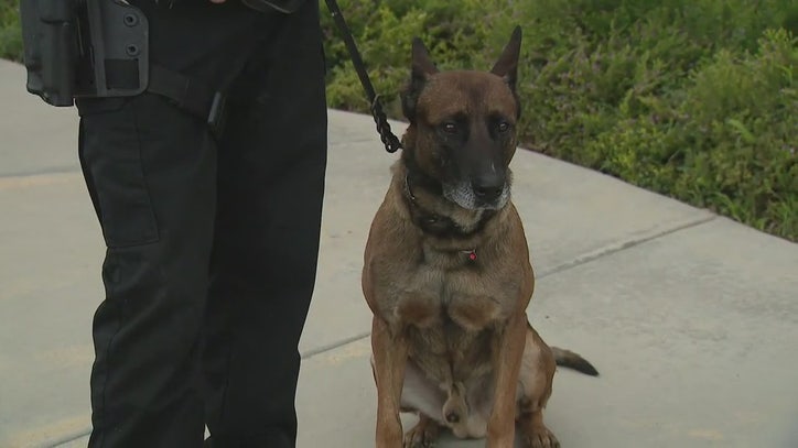 CORONA, Calif. - A police K-9 went to great lengths to apprehend a suspect.