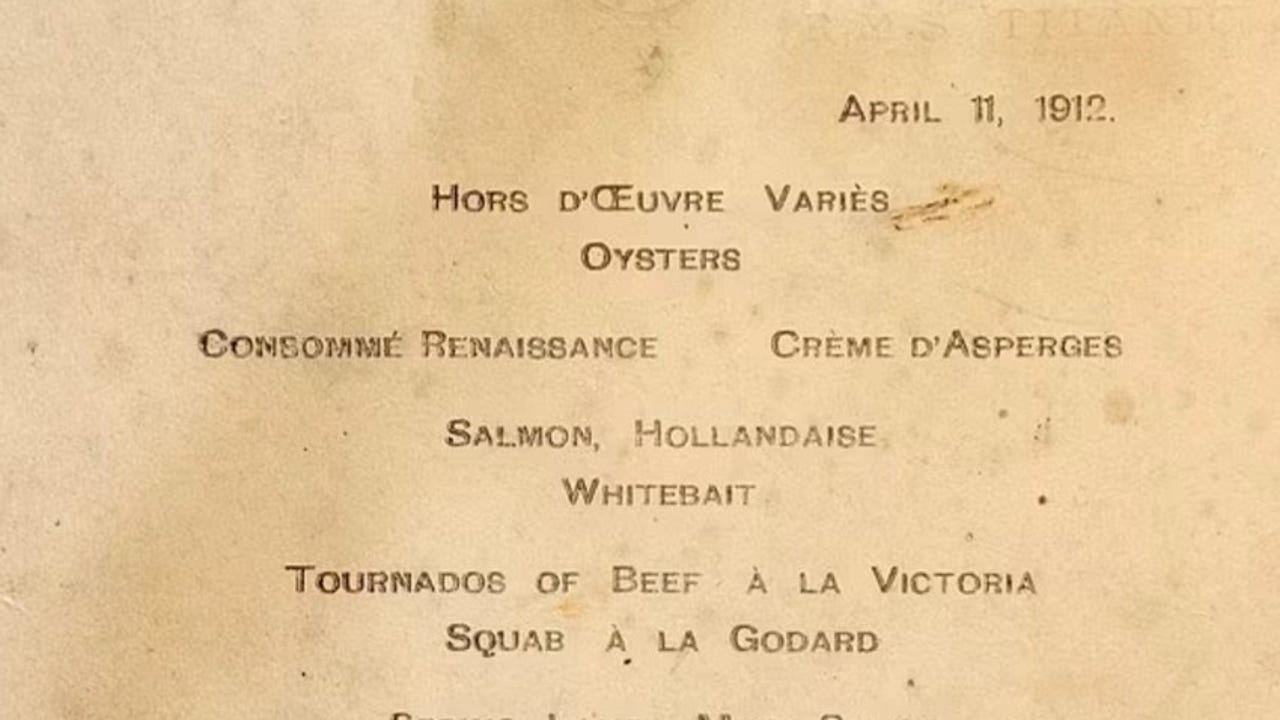 Rare Titanic first-class menu from ill-fated voyage heads to auction