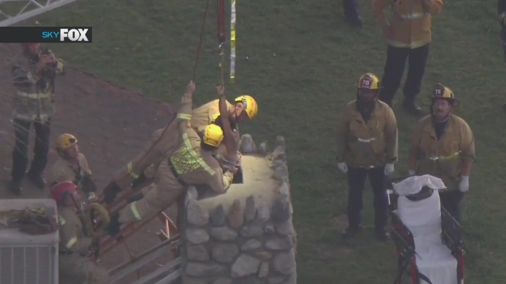 LAFD rescue crews were able to pull a woman out of the chimney of a San Fernando home. It's not clear how she got stuck.