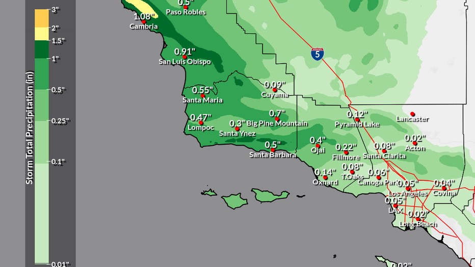 LOS ANGELES - A late-season weather system is moving through Southern California on Tuesday, delivering a mix of light showers and breezy conditions to the region.