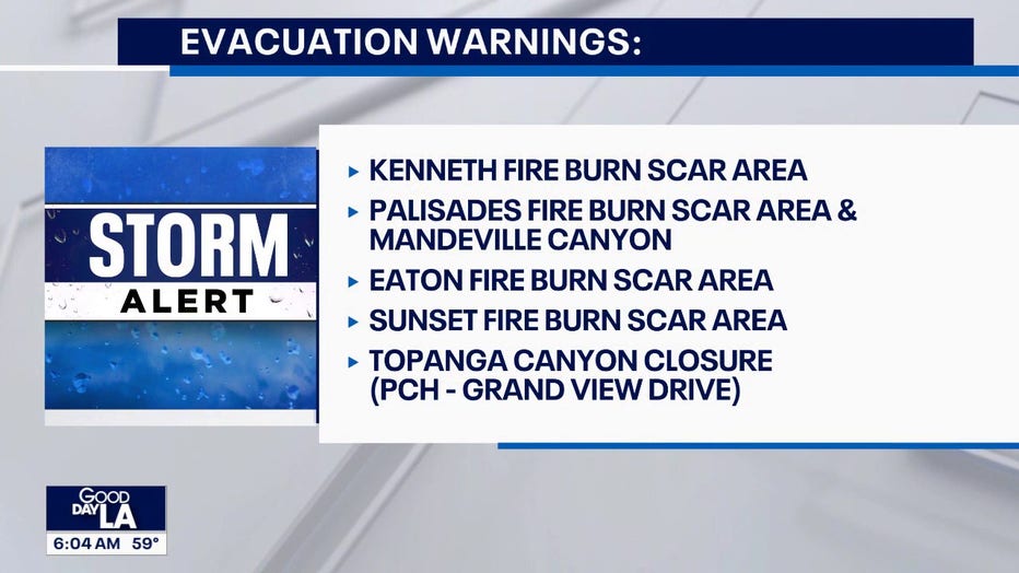 Forecasters warn of heavy rainfall, strong winds, possible thunderstorms, and changing snow levels that could impact coastal areas, valleys, and mountain communities over several days. Evacuation warnings have also been issued for recent burn scar zones.