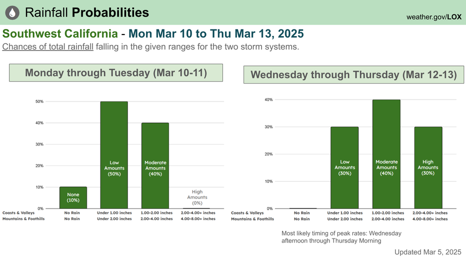 "Much of Southern California will be seeing that rain in your evening commute, so keep that in mind to take it nice and easy out there if you’re hitting the roadways," said FOX 11 Meteorologist Soumada Khan.