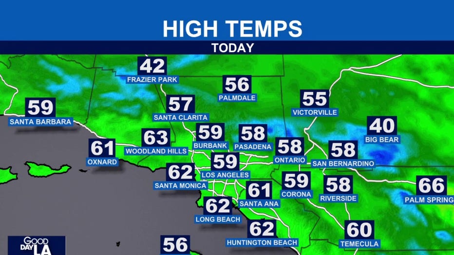 6:15 a.m.: Along with consistent rain and strong winds, Southern California residents can expect cool conditions.