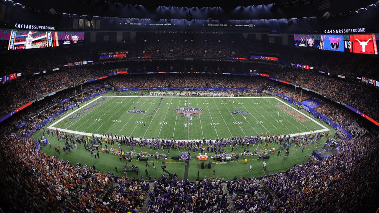 FILE - A general view of the opening kickoff during the CFP Semifinal Allstate Sugar Bowl between the Texas Longhorns and the Washington Huskies at Caesars Superdome on Jan. 01, 2024 in New Orleans, Louisiana. (Jonathan Bachman/Getty Images)