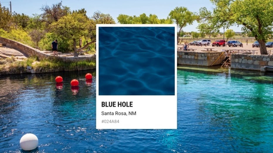 Blue Hole in New Mexico, along with the color swatch that matches its blue waters. (SIXT / FOX Weather)