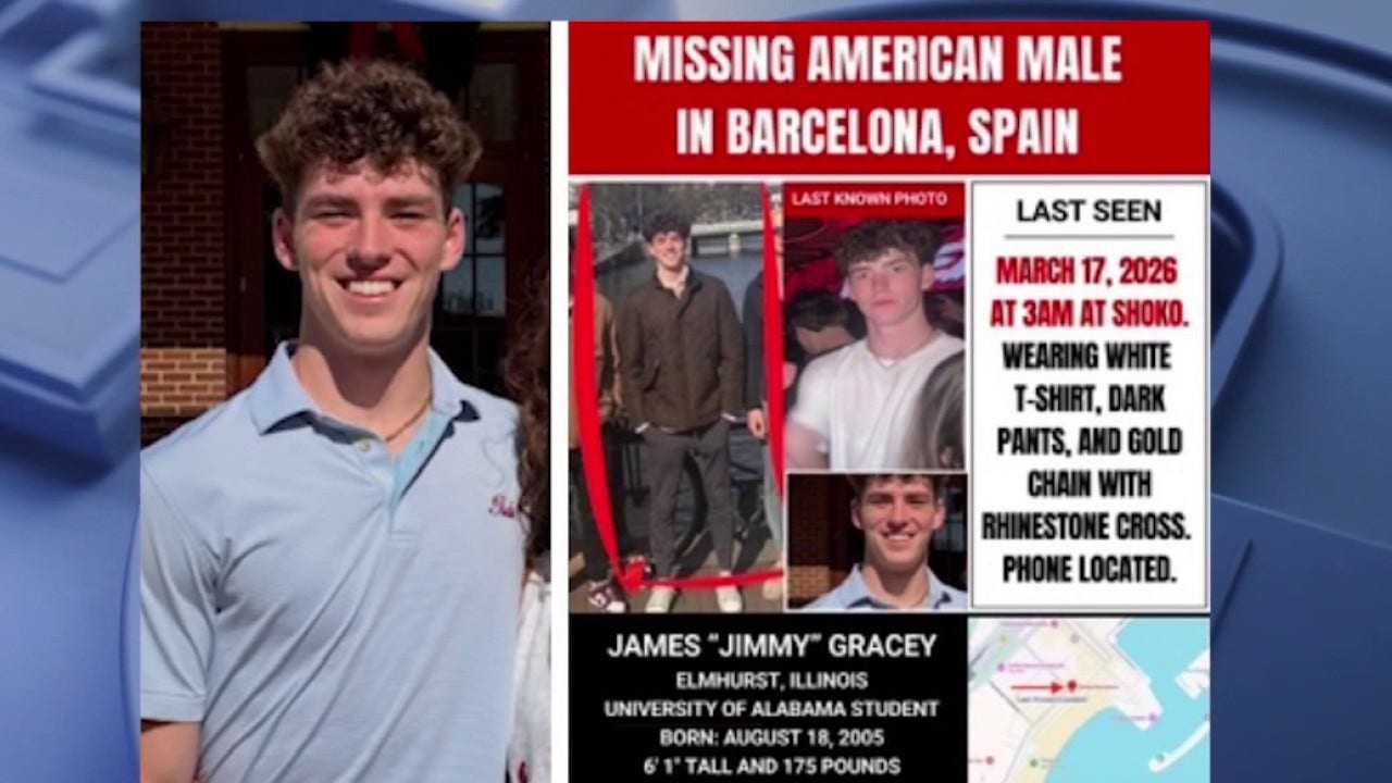 Cavin McLay, the president of Alabama's Theta Chi fraternity and a friend of Gracey's who also made the trip to Spain, told Fox News Digital Wednesday that the missing classmate is the chapter's chaplain and philanthropy chairman and is known for mentoring younger brothers and giving back to others.