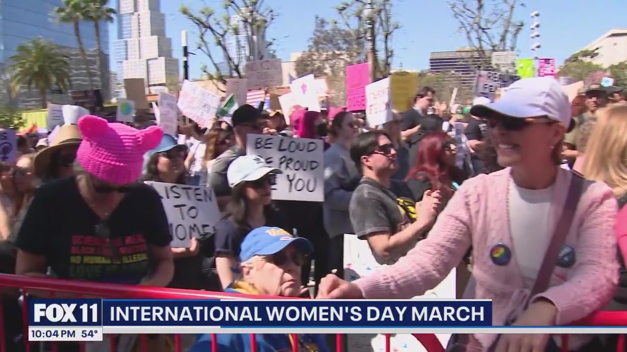 Los Angeles' march on Saturday is just one part of a global movement. Protests and demonstrations went on across the globe this International Women's Day.