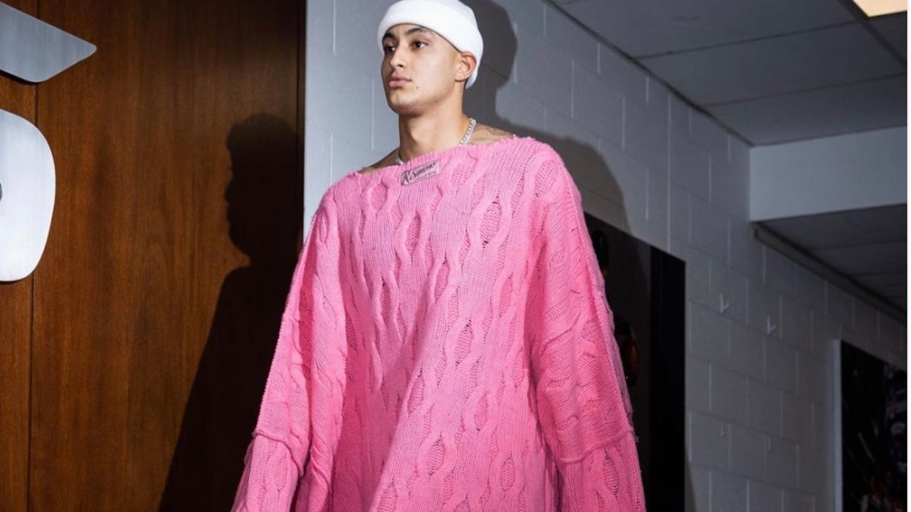 Kuzma appeared to be bracing for freezing weather entering Washington, D.C., when he strolled into the Capital One Arena on Monday wearing a severely oversized pink turtleneck sweater.