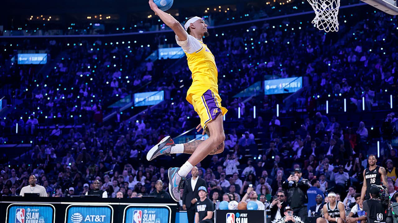 INGLEWOOD, Calif. - Los Angeles Lakers center Jaxson Hayes took flight during the Slam Dunk Contest at NBA All-Star Weekend on Saturday night at the Intuit Dome.
