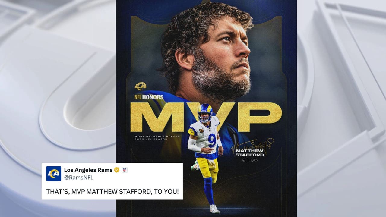 SAN FRANCISCO (AP) - Matthew Stafford edged Drake Maye for the AP NFL Most Valuable Player award on Thursday night in the closest race since Peyton Manning and Steve McNair were co-winners in 2003.