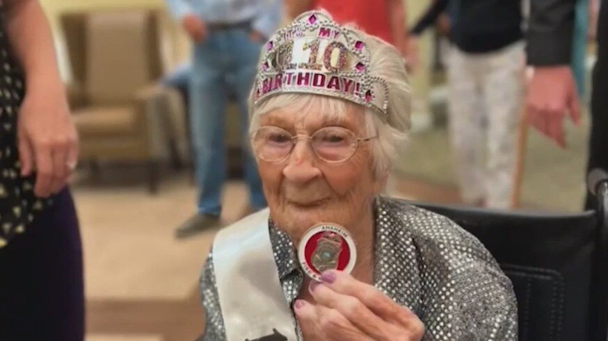 Connie Williams' 110th birthday wish was to ride around with the Anaheim Fire Department - and she got her wish!