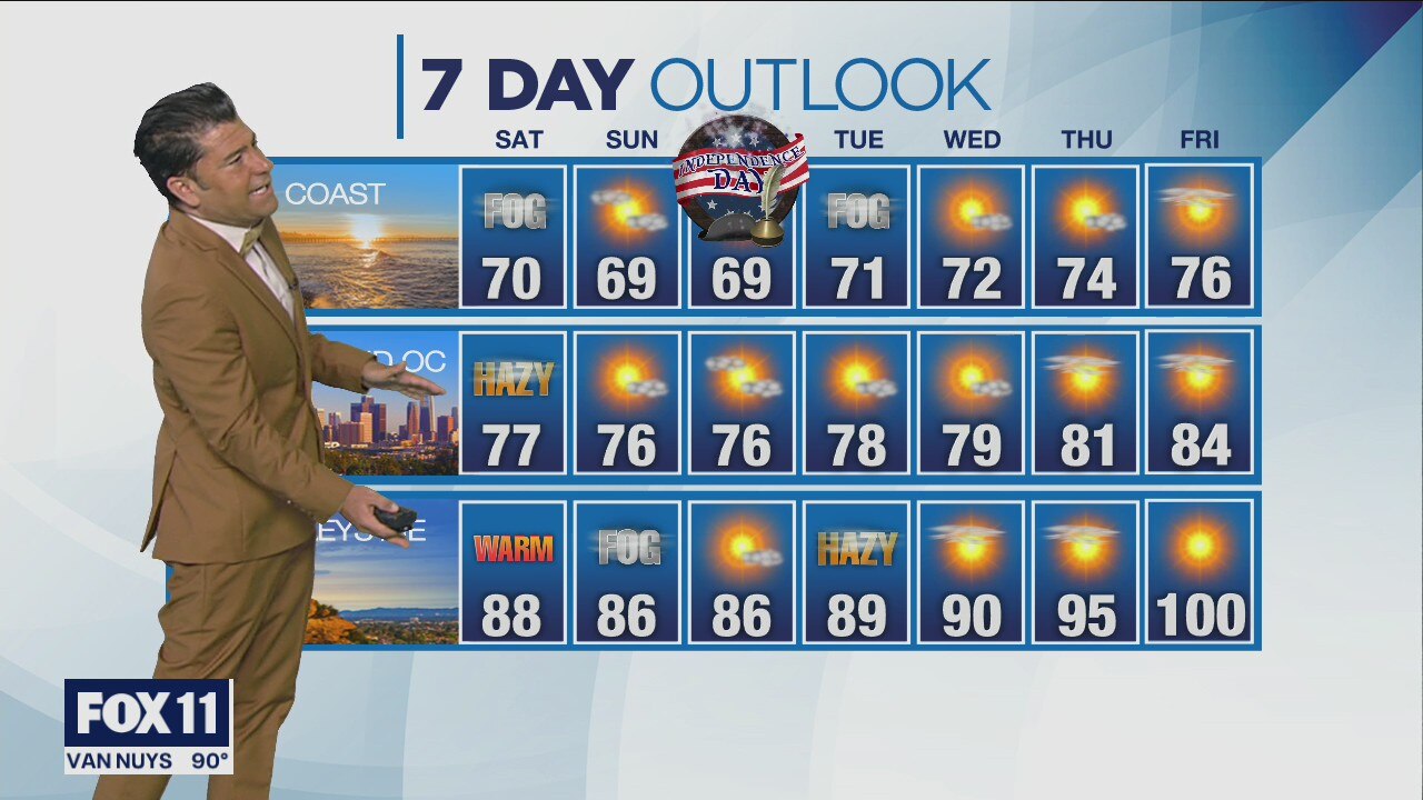 The latest forecast for the greater Los Angeles area, including beaches, valleys and desert regions.