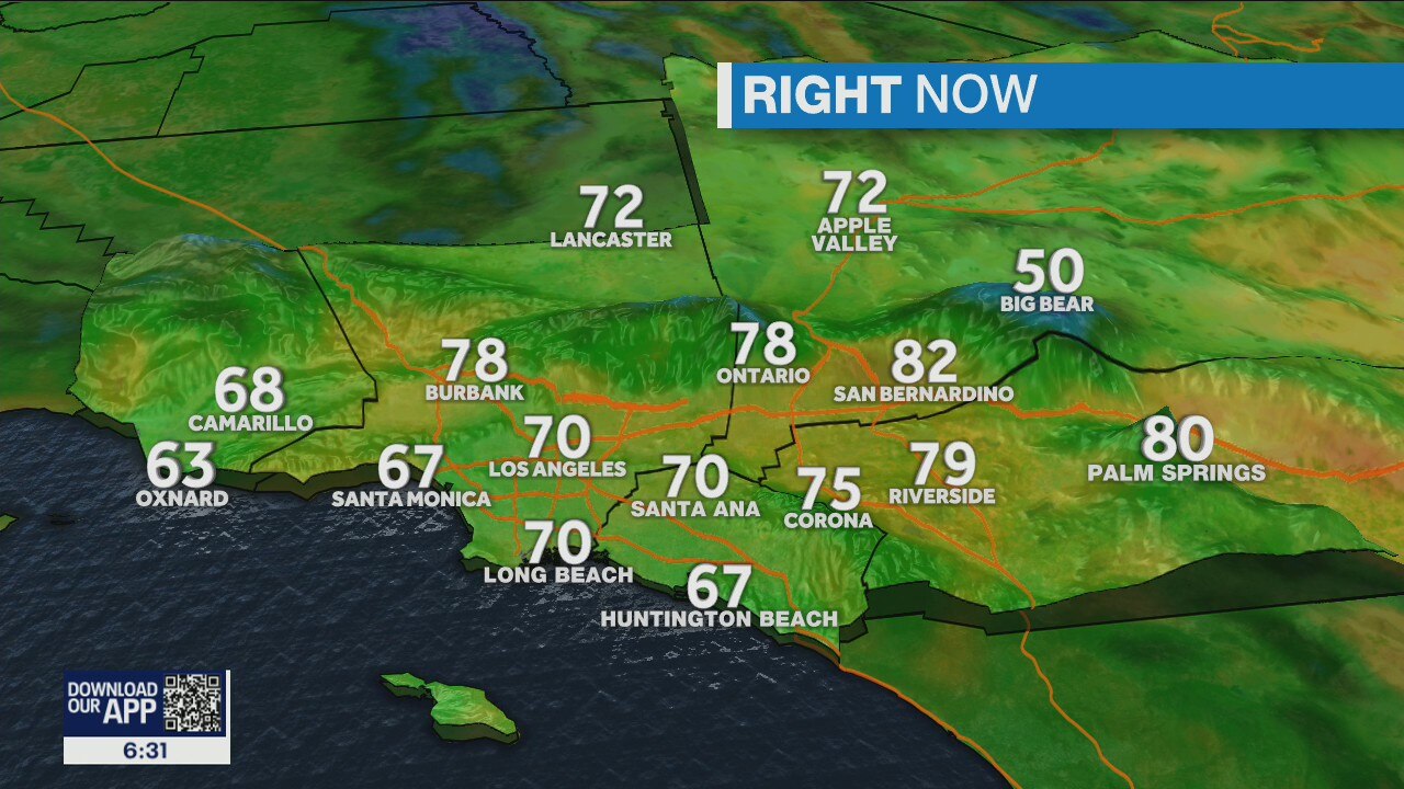 The latest forecast and air quality conditions for the greater Los Angeles area, including beaches, valleys and desert regions.